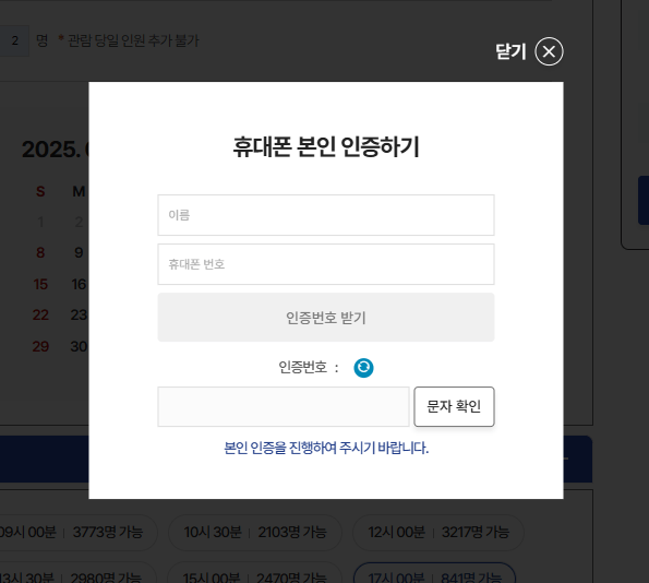 • 방문 예정 인원수가 변경되었다면 예약을 취소하고 다시 신청하는 것을 추천한다. 관람 당일에는 인원을 추가할 수 없다.